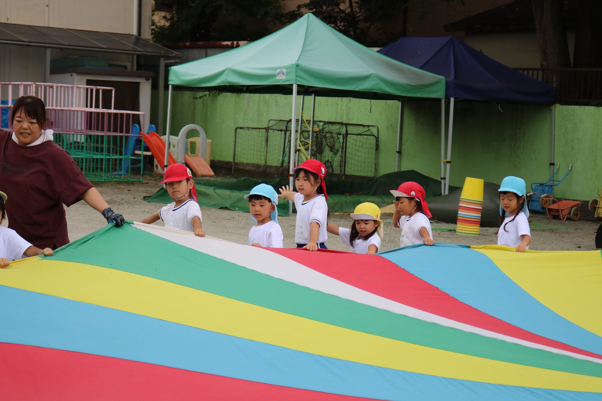 運動会総練習 パラバルーン(幼児) – 甲南立正保育園|子どもたちの豊かな成長をサポート